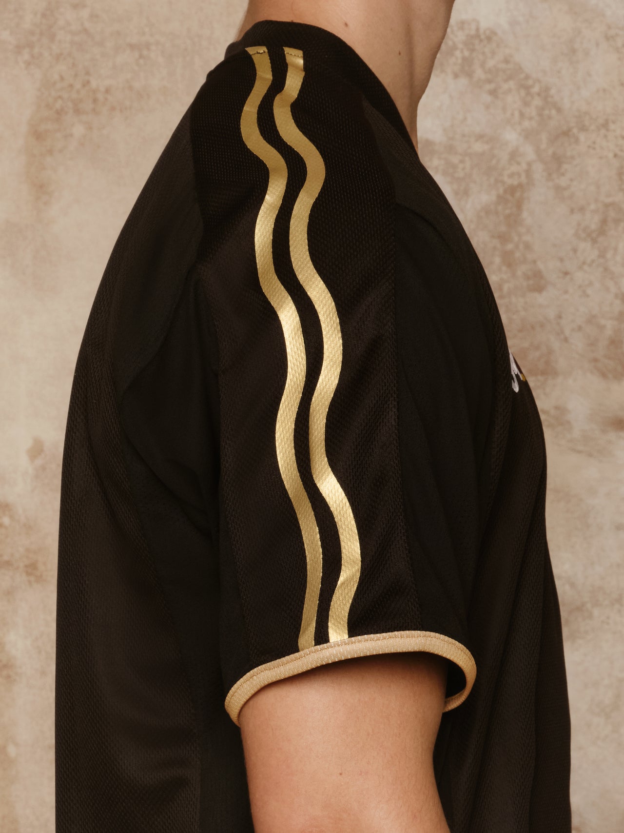 The MAD #5 Jersey commands attention with a sleek black base lit up by bold gold accents. Built from 4-way stretch performance fabric with multiple mesh vents, it’s lightweight, breathable, and engineered for the speed of the modern game. Iconic wavy graphics give it personality, while premium details — a high thread count ACP script embroidered on the chest and a custom 3D rubberized club crest.