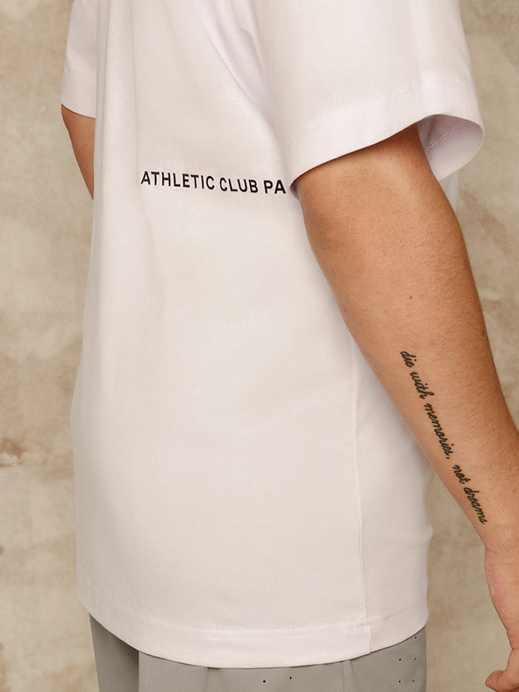 The Minimal Tee brings clean design into focus. Made from 240gsm heavyweight organic cotton with a relaxed fit and dropped shoulders, it carries a 3D puff print ACP script on the chest and a tonal “Athletic Club Padel” screen print along the right side of the back. Contemporary, understated, and built for modern wear.